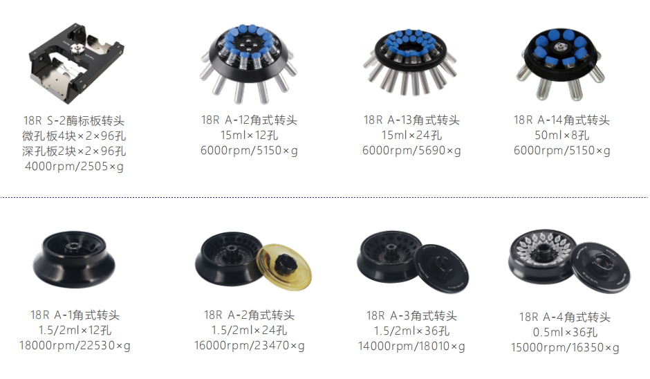 主机兼容多种高速角式转头和低速水平挂篮,节省实验室空间,广泛的角式转头和挂篮选择,适用于所有常用的离心管、真空采血管等;