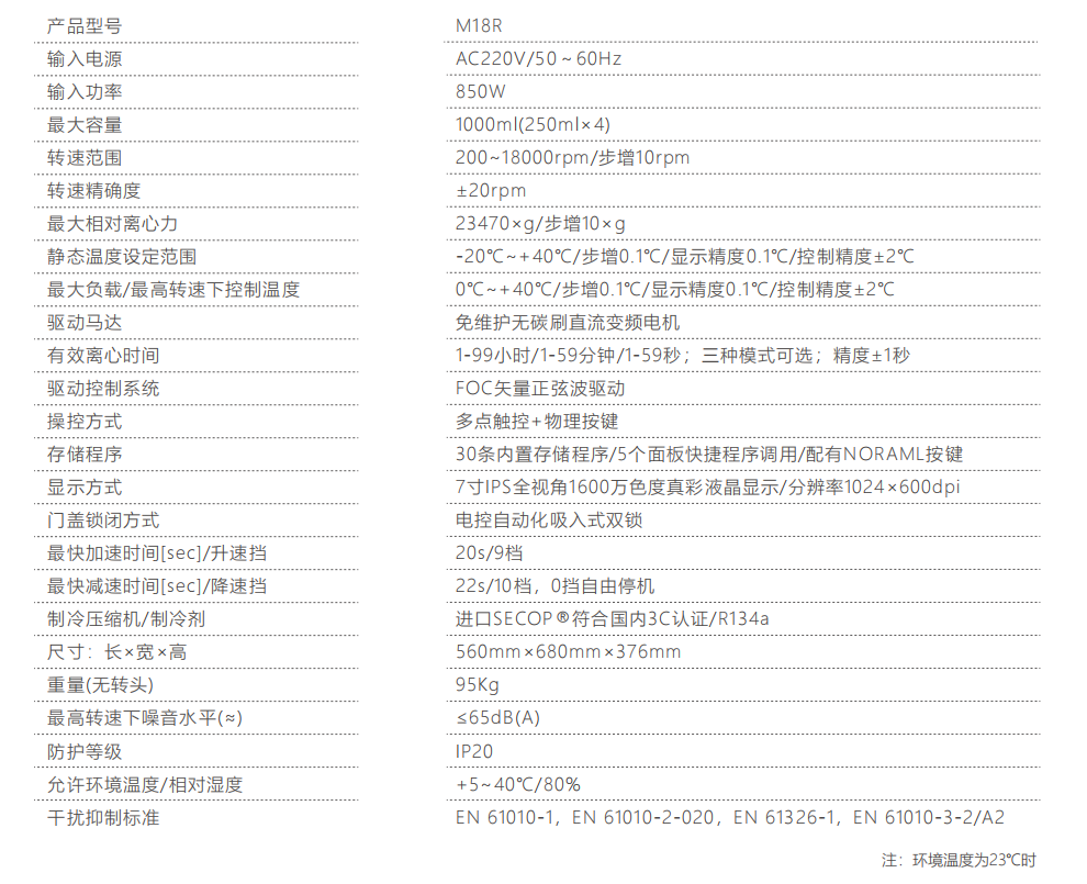 进口制冷压缩机组R134a环保制冷剂,PID数字控温,制冷效果更快、更精准,在最高转速下,仍能保持样本在4℃;
