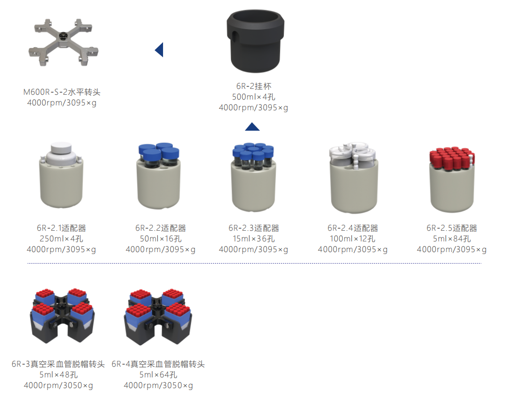 广泛的转头和适配器选择,适用于所有常用的离心管、真空采血管等;