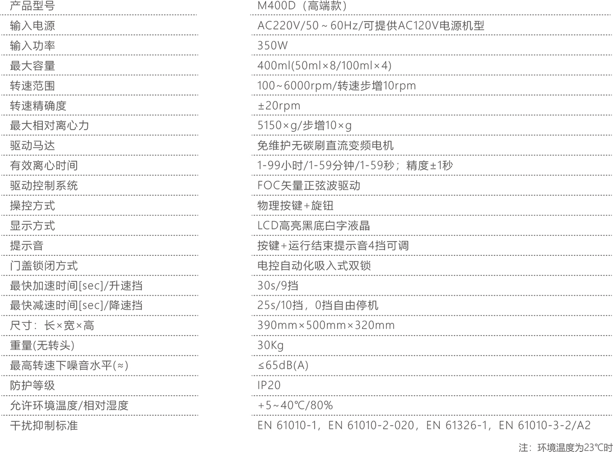 采用先进可靠的FOC矢量正弦波驱动控制系统,可精确的控制转速、时间和相对离心力;