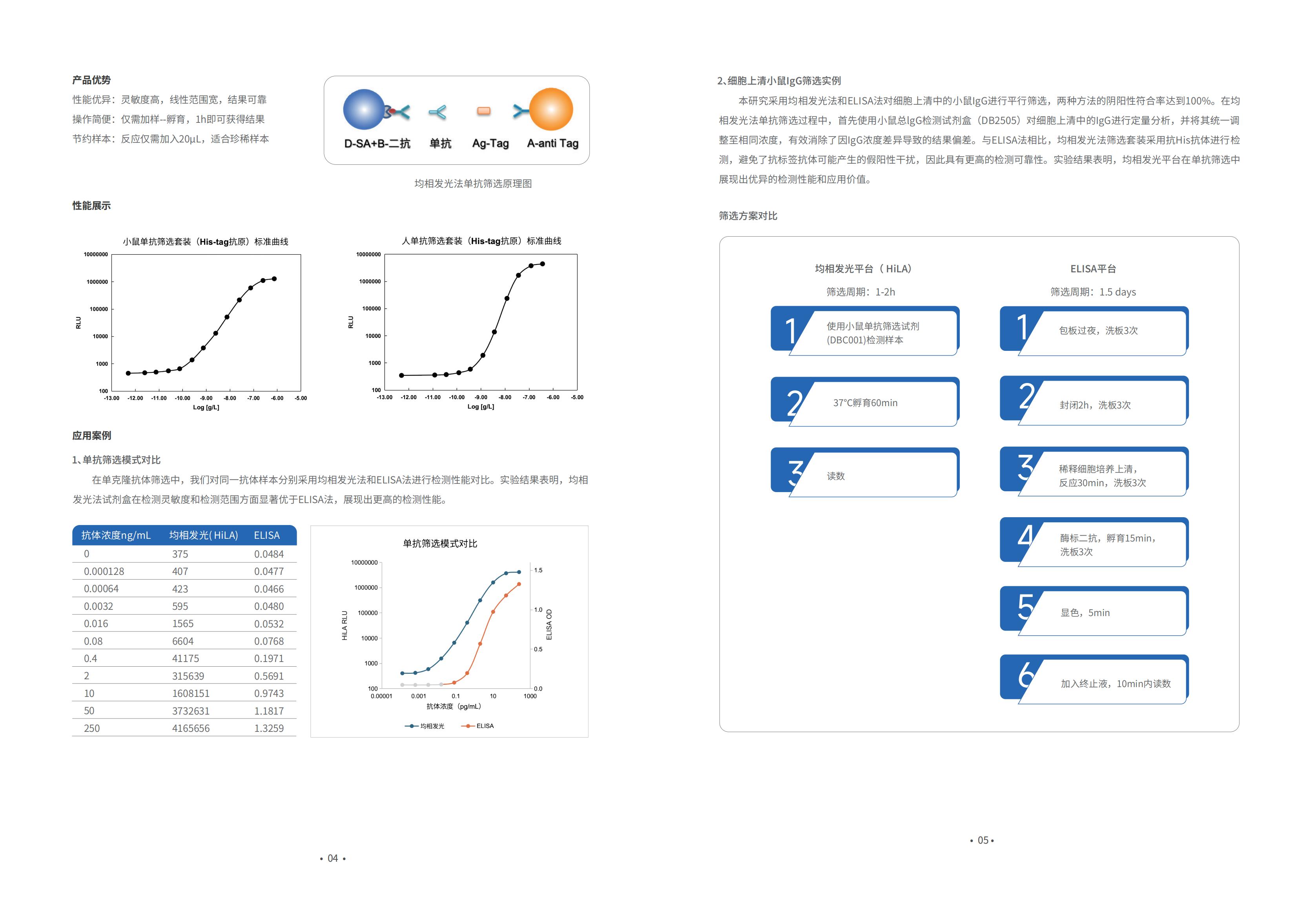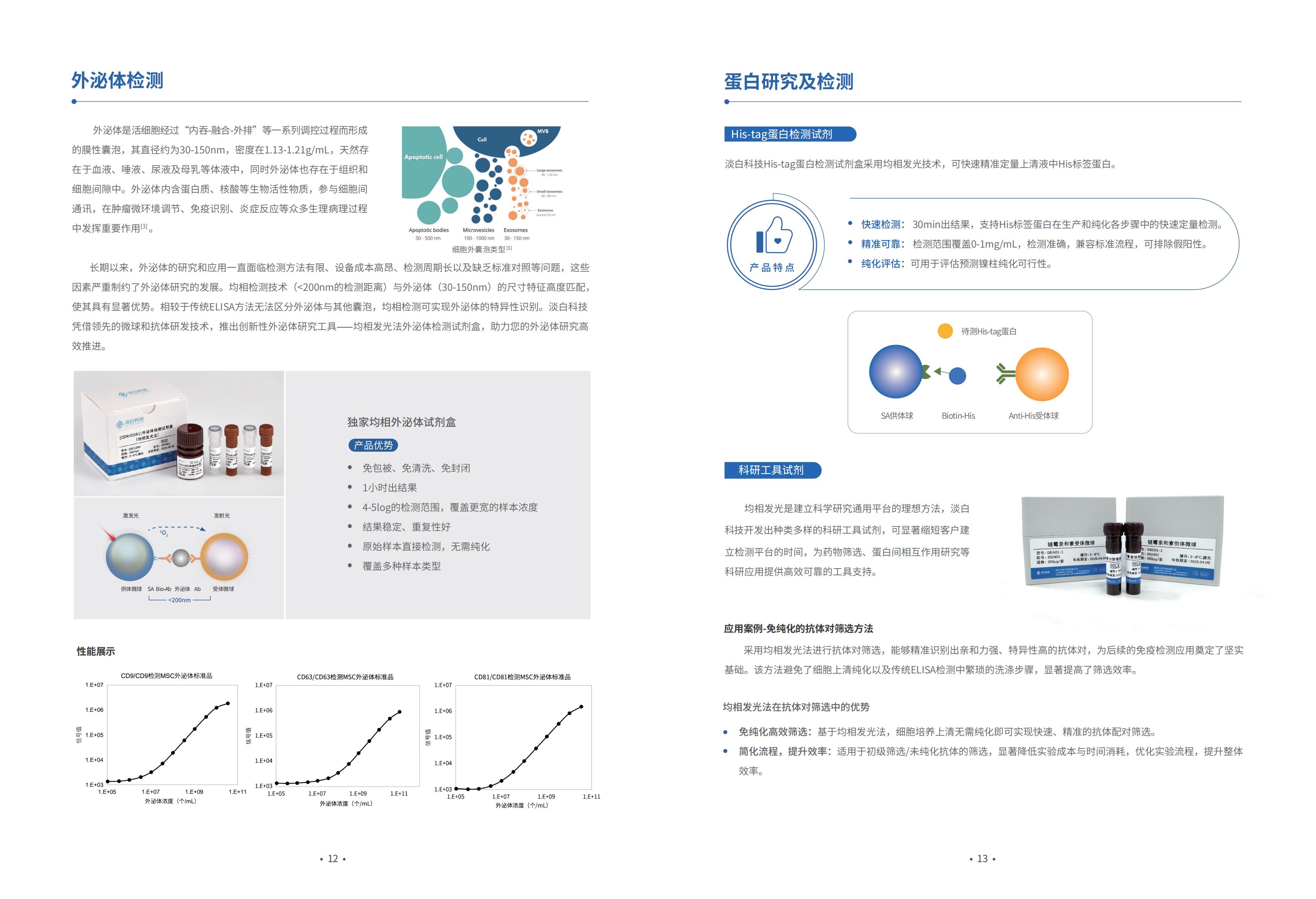 均相发光法(HiLA)是化学发光免疫分析领域一个新的里程碑,具有通量高、背景低、重复性好、灵敏度高、操作简单、样本需求少、检测范围宽等诸多优势,适用于自动化检测仪器。基于均相发光技术平台,淡白科技推出了全面的解决方案,涵盖从均相试剂、仪器到技术开发再到规模化生产的全过程,为临床诊断和生命科学研究提供了高效可靠的工具。