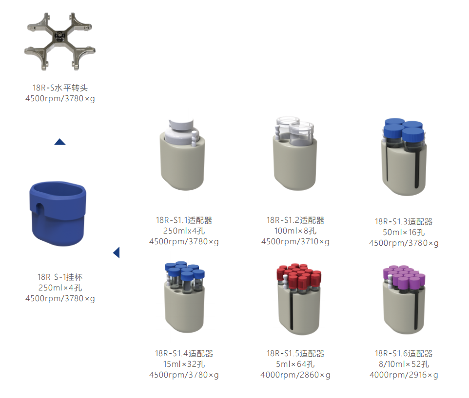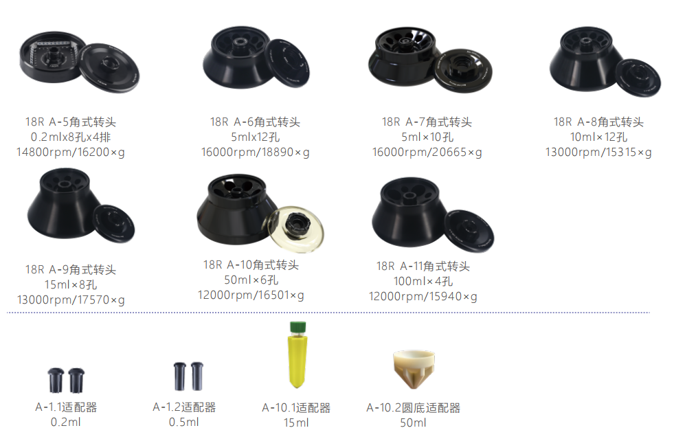 主机兼容多种高速角式转头和低速水平挂篮,节省实验室空间,广泛的角式转头和挂篮选择,适用于所有常用的离心管、真空采血管等;