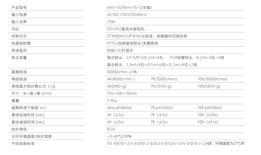 更快的加/减速速率,在更短的时间内完成实验所需,加速3秒内达到 额定转速95%以上;减速更人性化的分2种,按开门键即为自由停车 (≤15秒),开盖全部打开即为刹车减速(≤3秒);